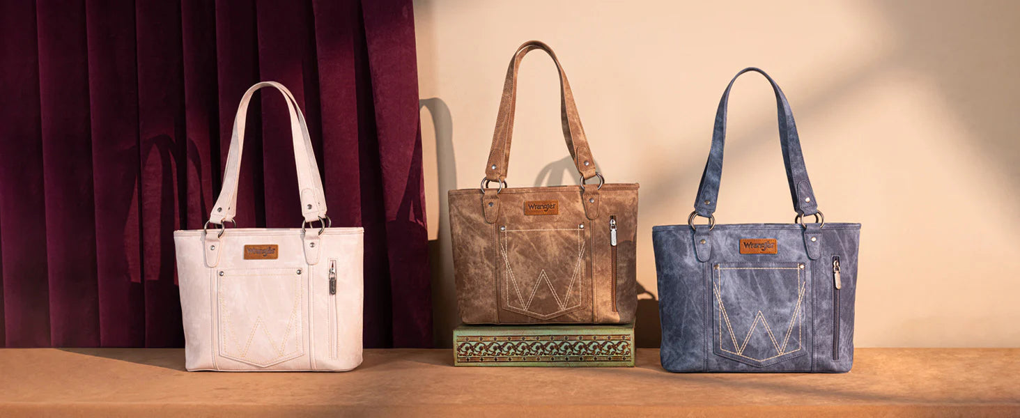 Wrangler "W" Stitch Water Repellent Denim Pocket Zippered Tote Bag